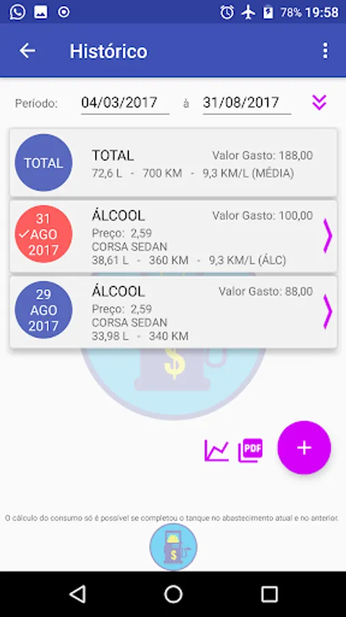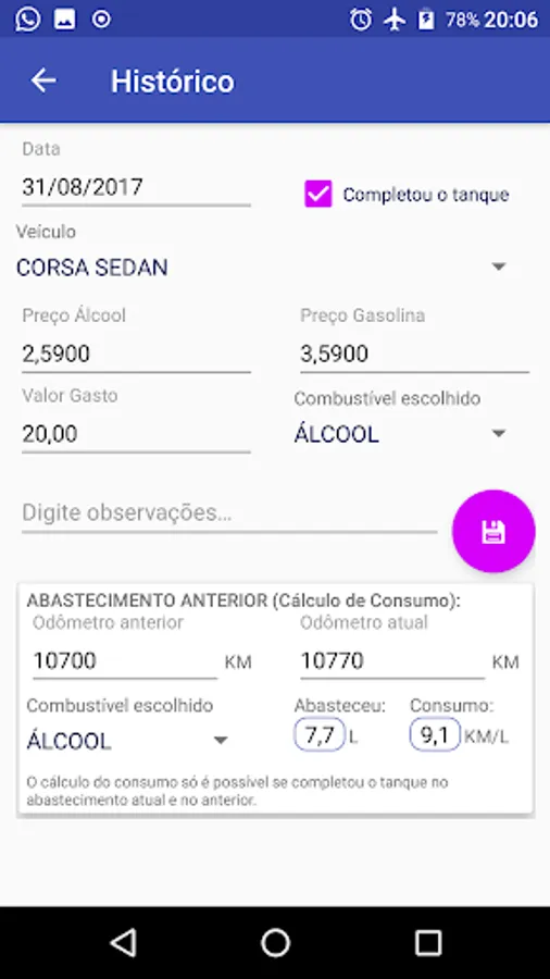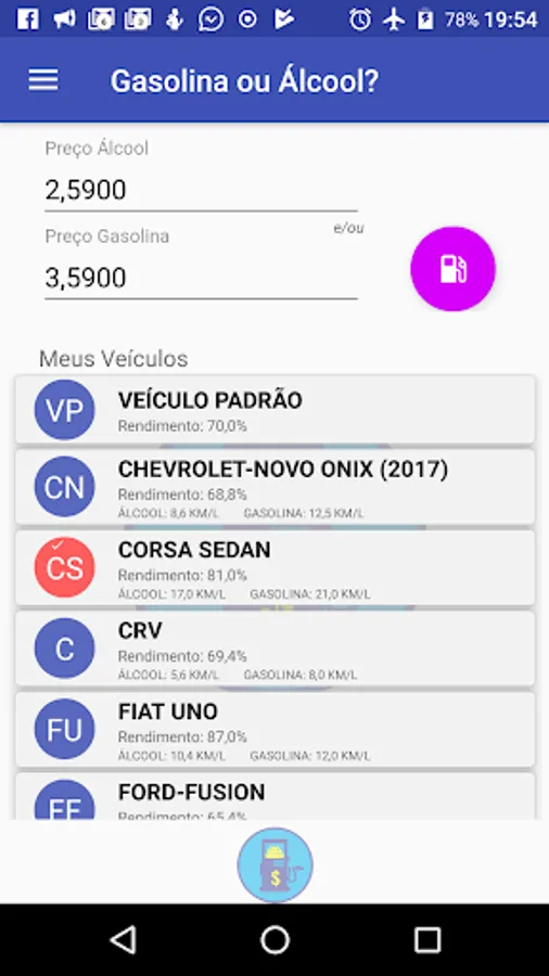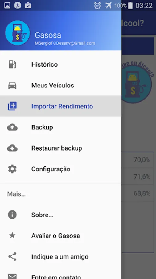 You can also register the consumption of their vehicles, not to use this standard percentage of 70%, which is the value used by most apps on the market.