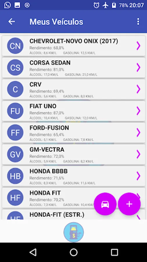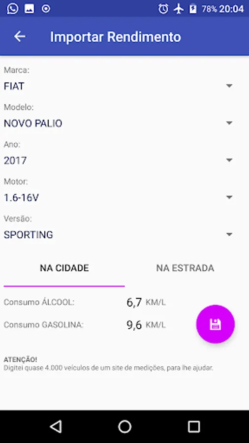 If you are unsure consumption in KM / L of your vehicle, we have a service that allows you to import a file with a measurements, facilitating the registration of their vehicles and leaving the more accurate calculation.