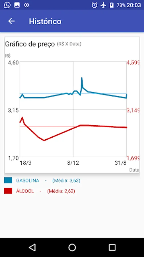 You can also save the made supplies and can follow, through chart, the evolution of fuel prices.
