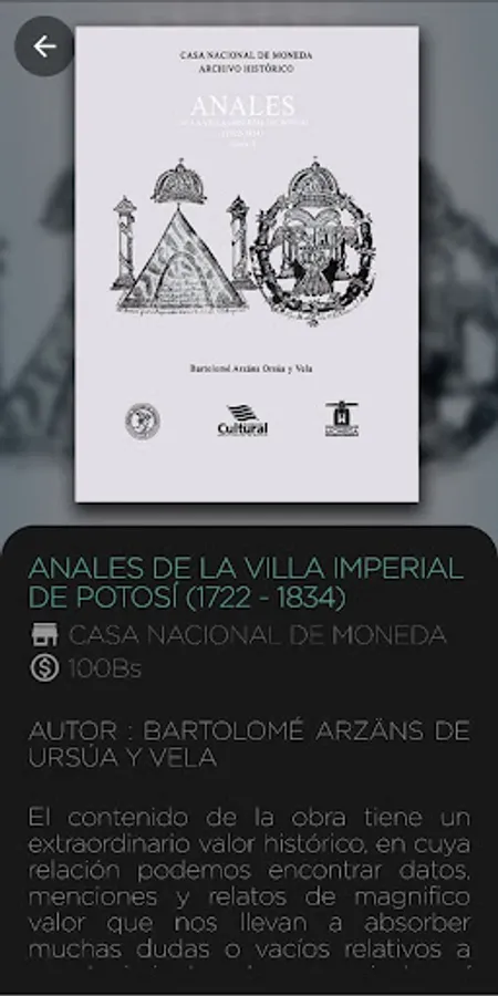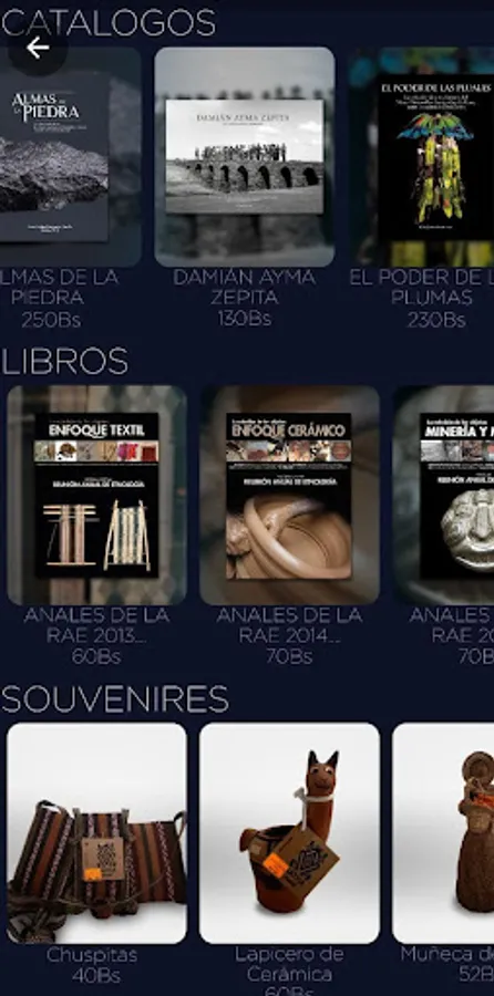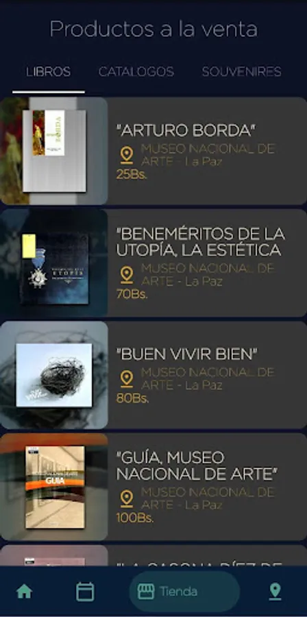 The Wayruru application is a cultural agenda, an open space for the dissemination and promotion of all cultural production generated by the repositories and Cultural Centers that are dependent on the Cultural Foundation of the Central Bank of Bolivia. At the same time, there is a virtual showcase through which the publications of books, catalogs and magazines, as well as souvenirs and objects produced by the Repositories and Cultural Centers, are made known.