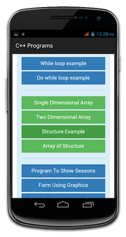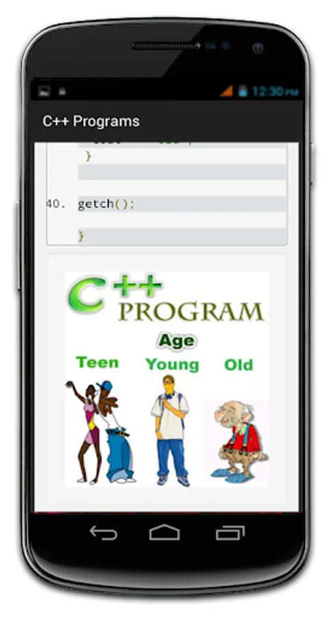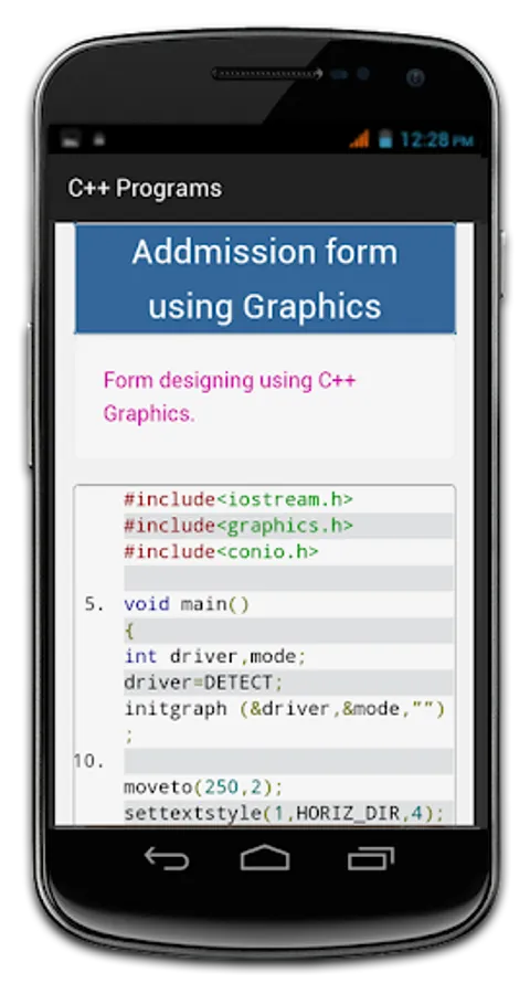 C++ Program app is a very nice collection of cpp programs. It includes graphics programming also.