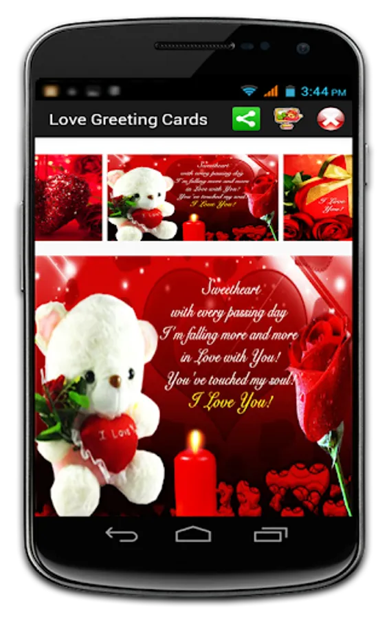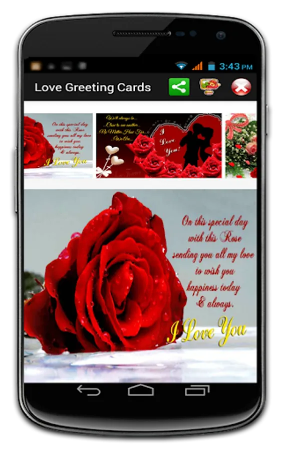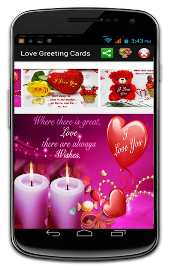 Love Greeting Cards app covers various collection of romantic love images and wishes.