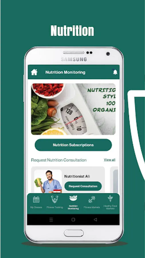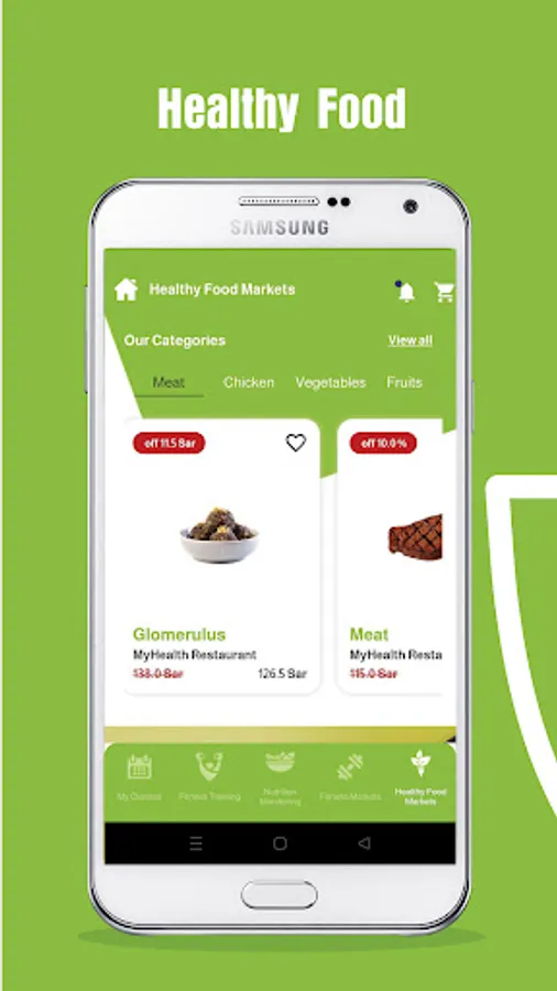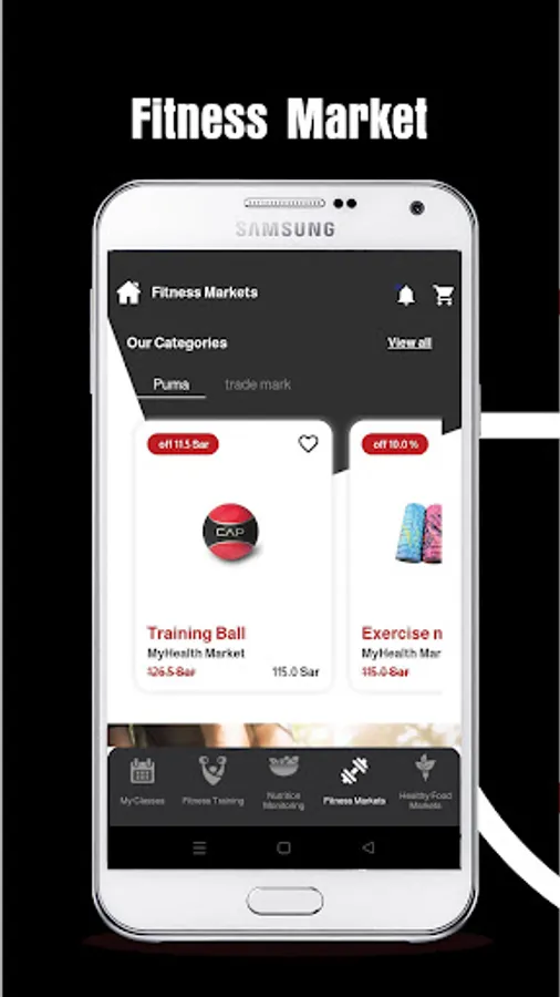 تطبيق جوال متكامل يخدم كل من يسعي الي تحسين اللياقة والصحة مع اسوق متعددة لتقديم الادوات والملابس الرياضية والغذاء الصحي
