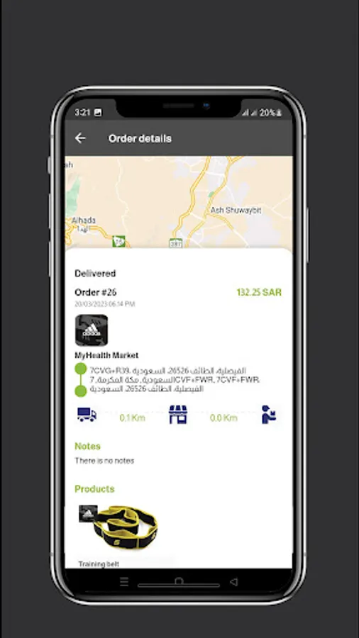 تطبيق يوفر خدمات لوجيستية لنقل المشتريات من متاجر اللياقة أو متاجر الطعام الصحي الخاصة بتطبيق ماي هلث للعملاء