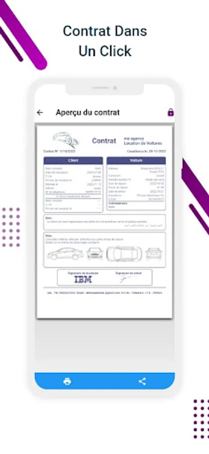 4 - Contract management: The application automatically generates personalized rental contracts for each rental, including vehicle details, rental conditions, associated costs and payment information.