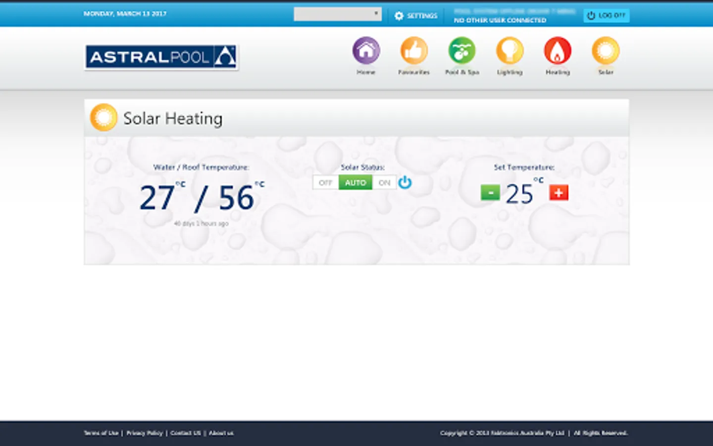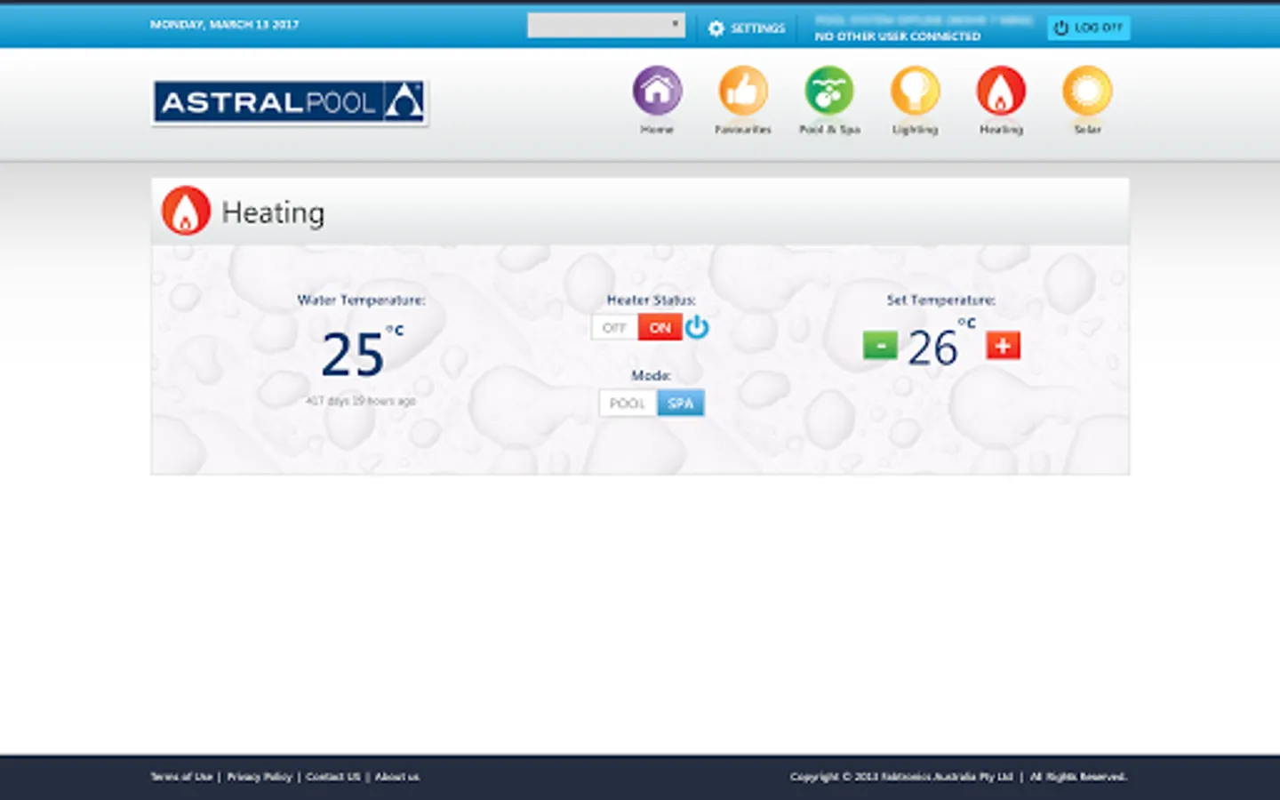 • View your pool’s current water temperature.