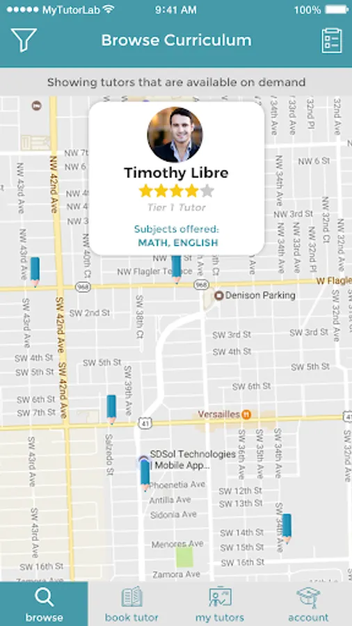 ● On-Demand Tutoring: Find a tutor near you that is available ASAP for a tutoring session. With this feature, a student can have a tutor at their location within minutes.