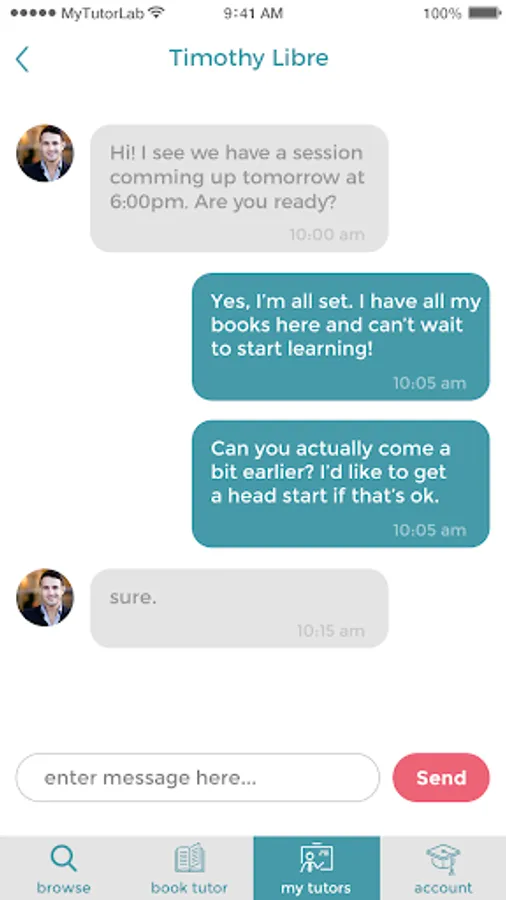 - Students have the ability to create their own personal account in the My Tutor Lab app. This feature allows them to take responsibility of their learning. They can search tutors, request sessions, and chat with their tutor at any time. Students that are 18 or older can directly book a tutor themselves without the approval of a parent.