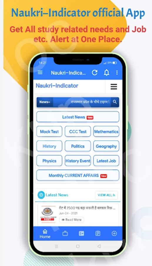 Welcome to Naukri-Indicator - This app is completely user friendly for Vacancies alert ,Online Test for competitive exam preparation , Current Affairs etc. This App is venture of Naukrindicator.com. Lot of students on Naukri-Indicator Social media platform like WhatsApp, Telegram, Instagram etc. we offer a flawless Vacancy alert , current Affairs, PDF ,online Test experience for all major services for FREE. With various sectors such as railways, banking, SSC etc., exams like SSC CGL , CHSL, MTS, GATE, REET, CCC, RSCIT, PATWARI, HIGH COURT GROUP D, RAJASTHAN SI, AIRFORCE, NAVY, ARMY, NDA, UPSC CDS, CTET, RRB NTPC, RRB GROUP D, RRB JE, SSC CHSL, SBI PO, SBI Clerk, SSC CPO, IBPS PO, DRDO MTS, DRMC, CIL, LIC Assistant Mains etc., we aim at providing the best Preparation & learning environment with an end-to-end preparation model. We’ve introduced free mock tests of Subject wise and Exam Wise , current Affairs , PDF , Study related content.