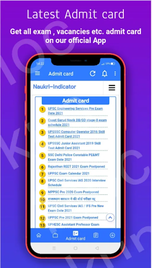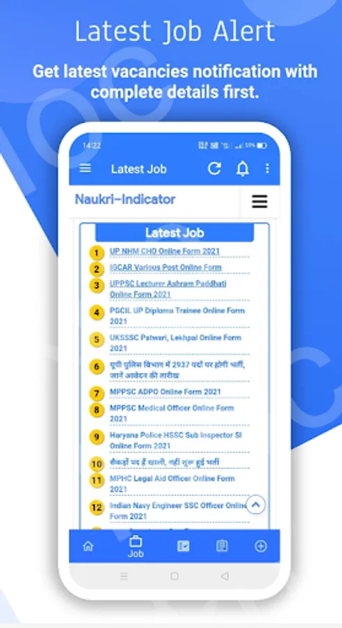 Naukri-Indicator App Provide detailed information and notification of Latest Online Forms, Job's Exams, Admit Card, Result, Answer Key, Admission & other various posts.