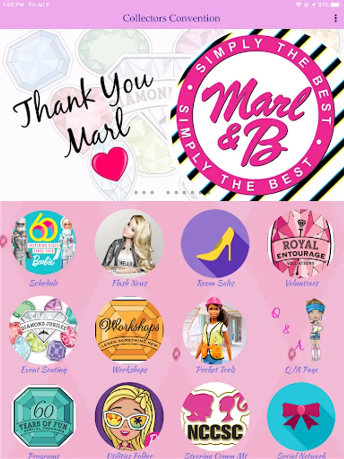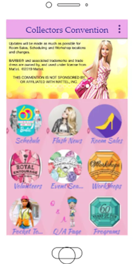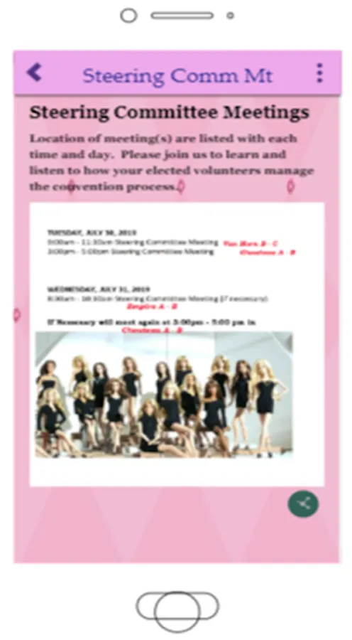 Private app to assist conventioneers make there way about a week of fun. Attendees will be able to see schedule changes and workshop times/locations. Room sales which is a huge item is now available on the app and will be updated each day. Main event seating charts and pocket tools are also featured.