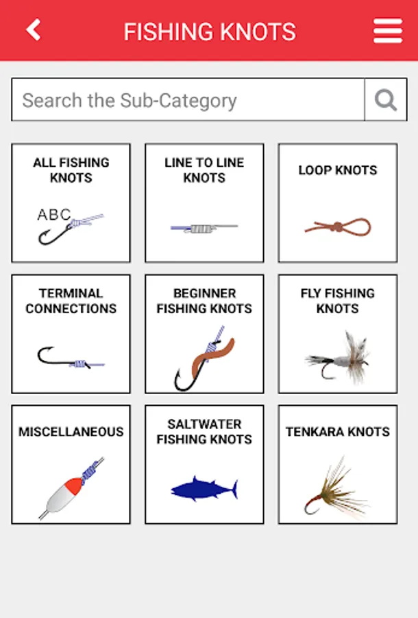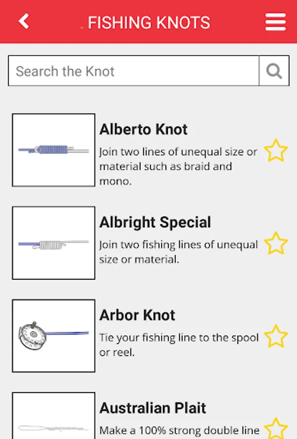 100% Arbor Knot, Alberto Knot, Albright Special, Arbor Knot, Australian Plait, Aussie Quickie, Baja Knot, Berkley Braid Knot, Bimini Twist, Blood Knot, Bobber Stopper Knot, Bristol Knot, Centauri Knot, Clinch Knot. Davy Knot, Double Uni Knot, Double-Double Uni, Drop Shot Rig, Dropper Loop, Egg Loop Knot, Eye Crosser Knot, FG Knot, Fish N Fool Knot, Harvey Dry Fly Knot, Haywire Twist, Homer Rhode Loop Knot, Hook Removal - Advance & Cut, Hook Removal - String Yank, Improved Clinch Knot, J Knot, Jack's Knot, Jansik Special, King Sling, Knot Tyer Nail Knot, Knotless Knot, Kreh Loop, Kryston Loop Knot, Loop To Loop Knot, Nail Knot, NanoFil Knot, Needle Knot, Non Slip Loop Knot, Offshore Swivel Knot, Orvis Knot, Orvis Tippet Knot, Palomar Knot, Perfection Loop, Pitzen Knot, Rapala Knot, Riffle Hitch, Right Angle Rig, San Diego Jam Knot, Seaguar Knot, Slim Beauty Knot, Snell Knot - Uni Version, Snell Knot -Traditional, Snell Knot - Easy Version, Spider Hitch, Strike Indicator Loop Knot, Strike Indicator - Double Uni, Surgeon's Knot, Surgeon's End Loop, Tenkara Level Line, Tenkara Traditional Line, Trilene Knot, Turle Knot, Uni Knot, Willis Knot, World Fair Knot, Yucatan Knot (72)