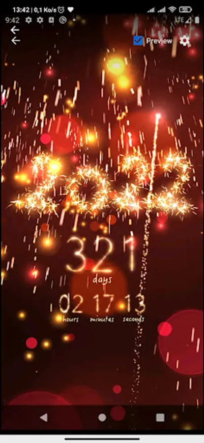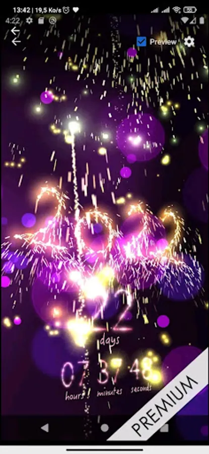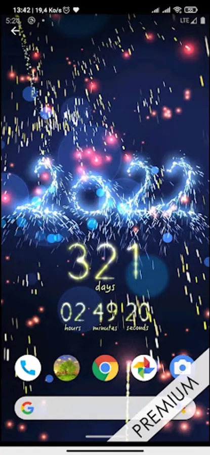 Set a Happy New Year message, disable it or a countdown to New Year app for 2022 full of sparks on a scene with lot of colorful lights and fireworks.