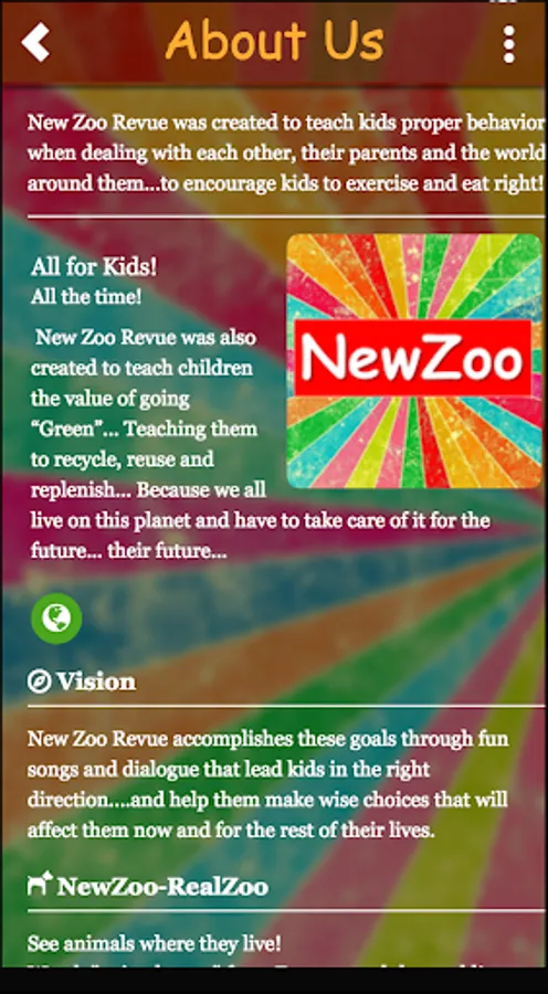 This app is for people of all ages. It teaches them how to respect one another and treat each other with kindness. It also teaches the importance of taking care of our planet! We all have to share the earth with each other and with the animals. It encourages people, in a fun way, to recycle, reuse and share!
