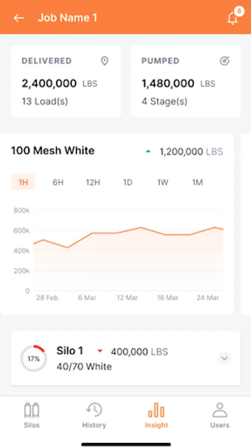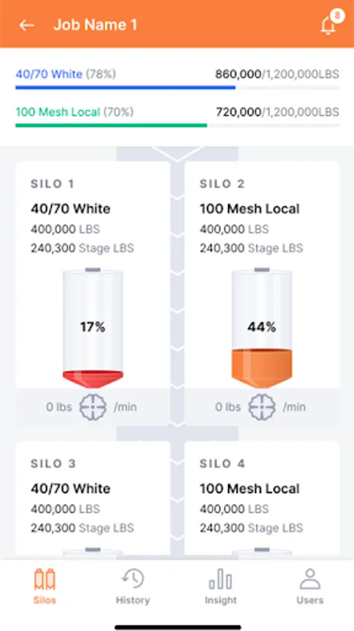 This application display NexStage Silo System which stores large proppant volumes in small-footprint vertical silos. Available in a range of sizes and configurations, each silo is delivered and erected in about two hours with a crane-free transport system. The Application visualize Silo data in Realtime and help decision maker make informed decisions.