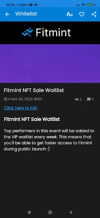 Receive a large number of whitelists and events directly on your phone, register quickly and easily, save the most important ones in a favorites list. Receive with the term of everything, stay on top of everything!!
