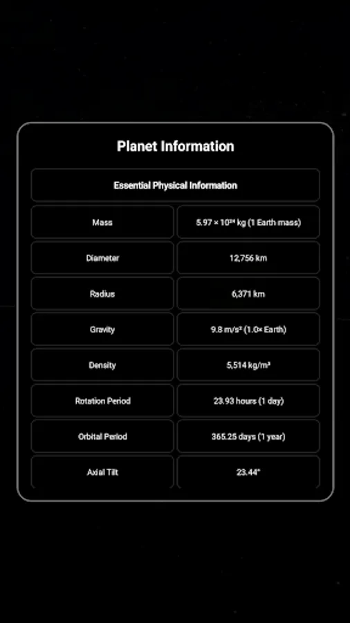 • Swipe left or right to switch between planets with smooth camera transitions.