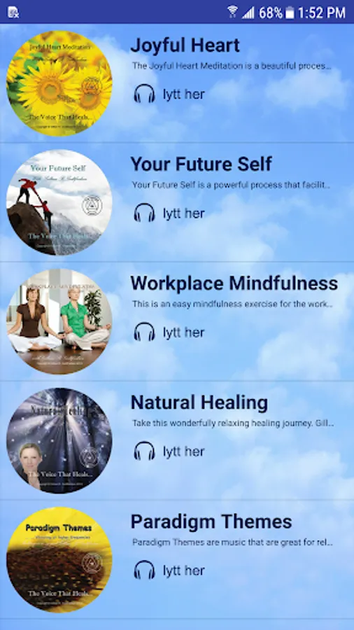 Meditation for Everyone is designed so that you can use simple and relaxing meditation techniques during your busy day. The goal is to bring meditation closer to your everyday life. The app gives you access to a number of beautifully guided meditations. With the app, you get access to beautiful and effective meditations by Gillian Godtfredsen.