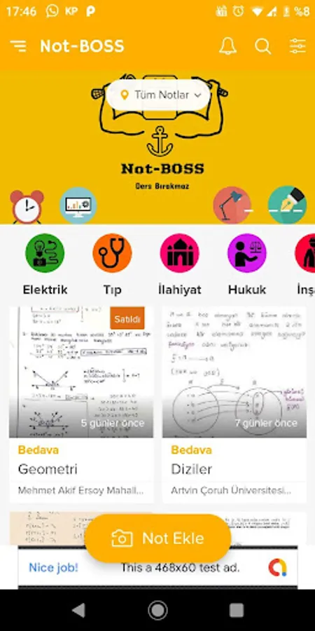 Not-BOSS Tüm Üniversite Öğrencilerinin Vize,Final ve Bütünleme Sınavlarında Not Problemi Yaşamadan İstedikleri Ders Notlarına Ulaşmaları Parmaklarının Ucu Kadar Yakın.İster Ücretli İster Ücretsiz Notlarını Koyarak Kendilerine Cep Harçlığı Çıkartabilecekleri Mesaj Atabilecekleri Not Paylaşım Platformudur.