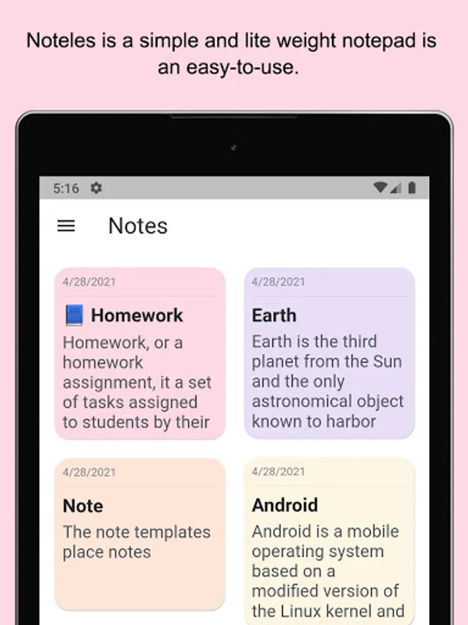Noteles application makes it easy to write notes at anytime & anywhere.