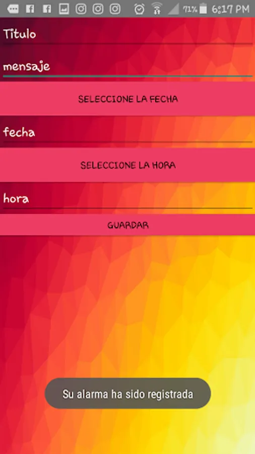 The alarm reminder will be displayed with the text that was added when configured, since this alarm sends a notification with the title of it and the message of what should be done.
