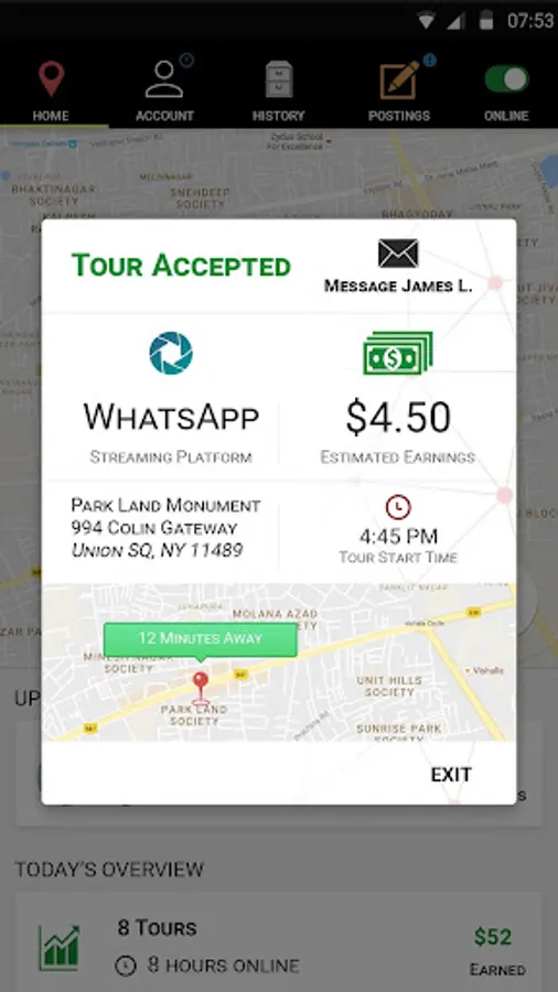 Users will make a request to visually view somewhere via live stream and will pay a fee to visual agents. Visual agents will accept or decline requests from users. If a VA accepts the request from the user, he/she will use their mobile device to stream via video chat the location/event etc. that user requested to see on that day and time. Visual agents will receive payment from users to execute request.