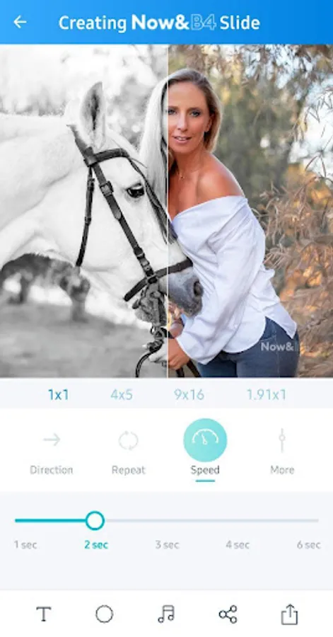 Now&B4 is an Instagram friendly app that has been created to share slides and videos in the exact formats and measurements of the Instagram posts, stories, and videos. Also, it can be shared with Messengers, Facebook, and websites.