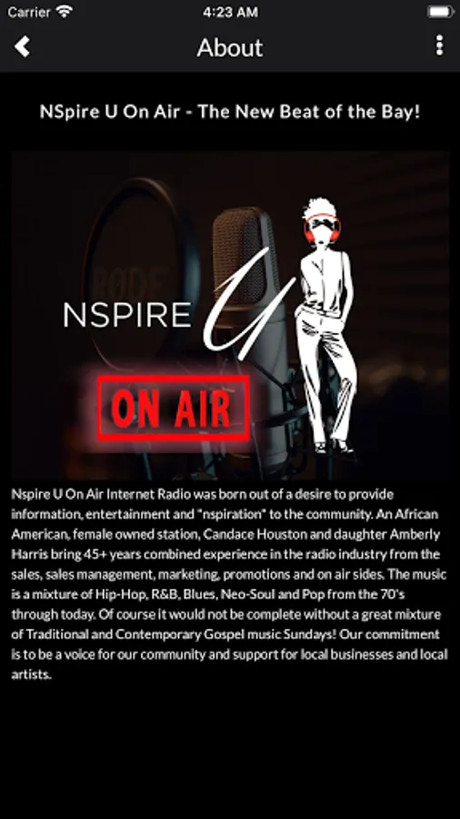 Nspire U On Air Internet Radio is a mixture of Hip-Hop, R&B, Blues, Neo-Soul, Gospel, and Pop from the 70's through today. Our commitment is to be a voice for the community.