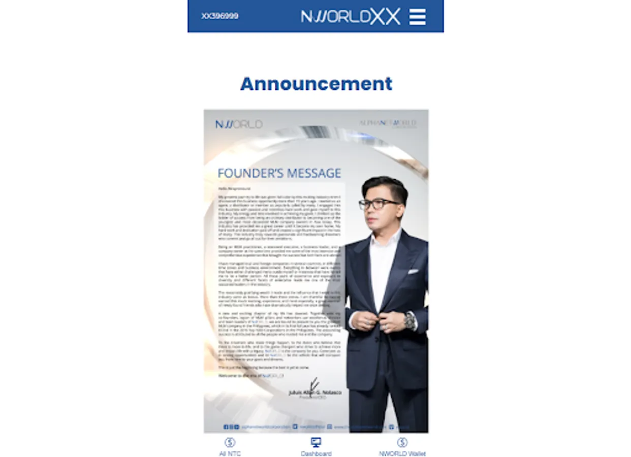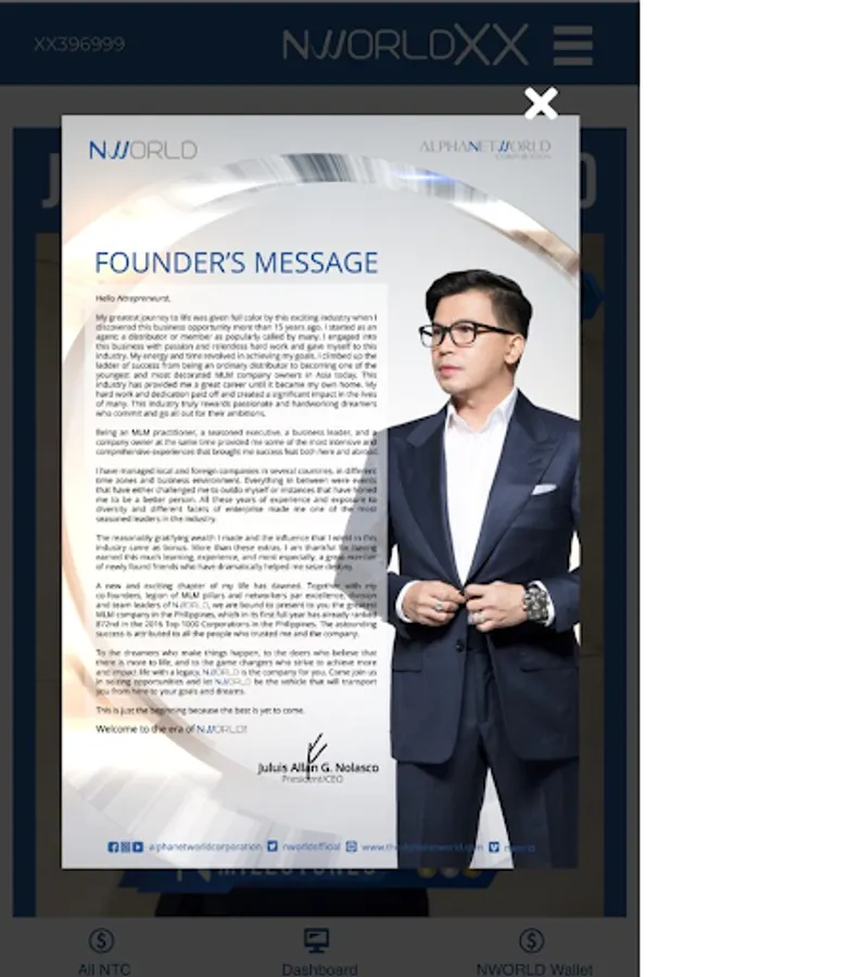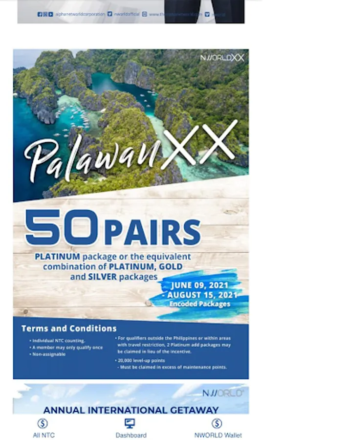 NWORLD XX is created for our active NWORLD practitioner's and active Entrepreneur's that is building an organization with a long lasting, sustainable, stable and profitable network. NWORLDXX monitors all the points of your XX CASH, PALAWAN XX, ANNUAL INTERNATIONAL GETAWAY, and PAIRS THIS CYCLE in this system. Especially, all your incomes and all the announcement online.You can also manually add or upgrade your package.