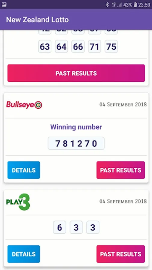 The my lotto New Zealand results solution for Winning Numbers, Draw History, Payouts and Prize Levels of New Zealand Lottery, Lotto nz, Bullseye, Keno, Play3.
