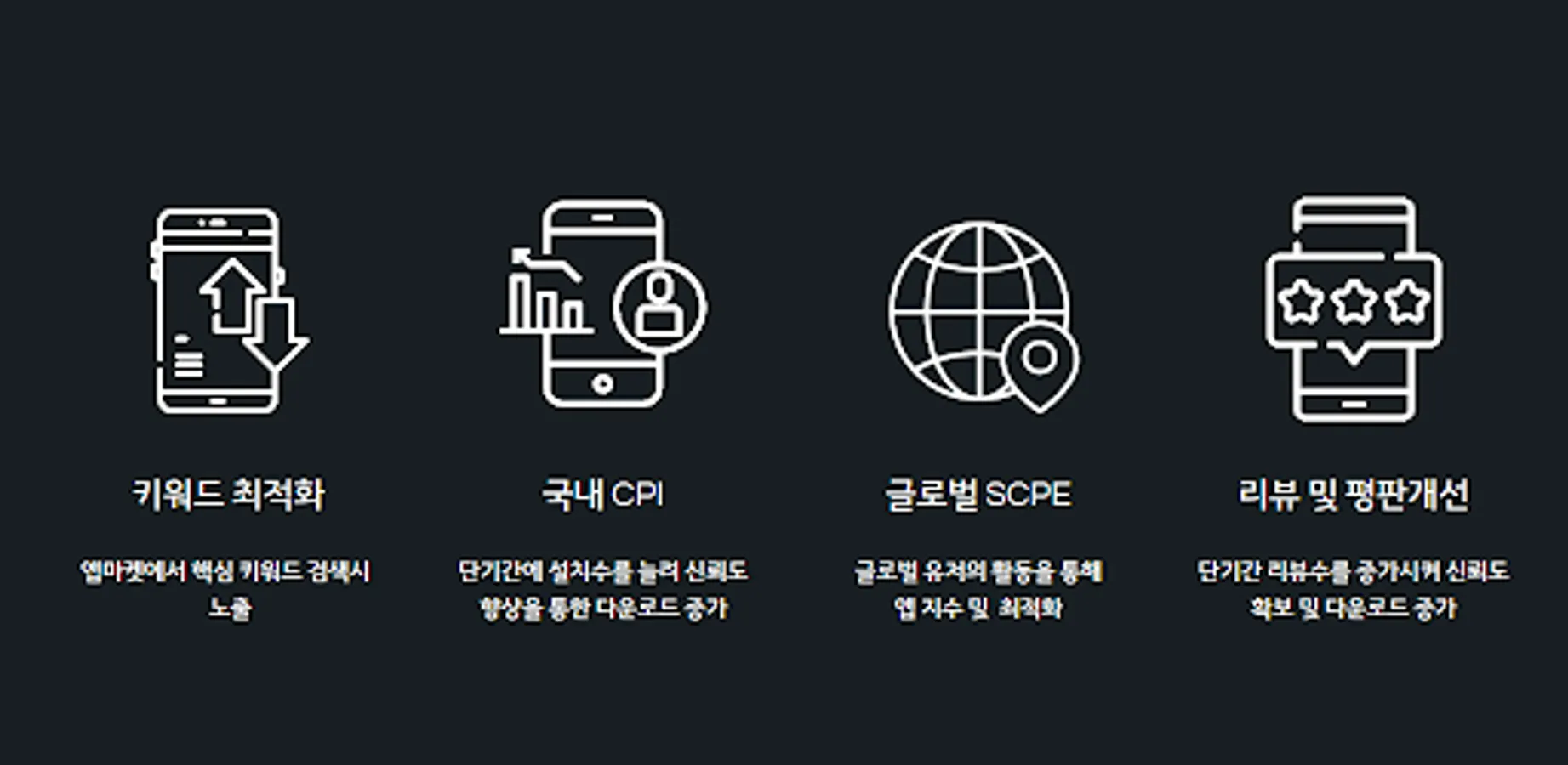 We think about the most reasonable app marketing, such as app search at a reasonable price, app search, app installation, app review, etc.