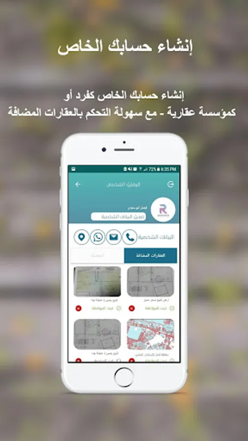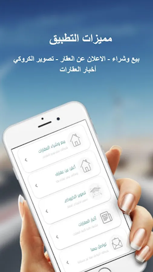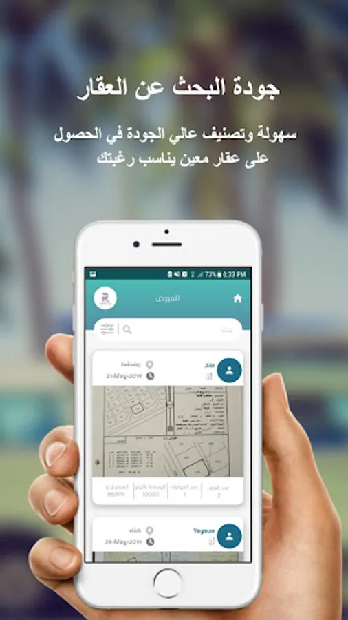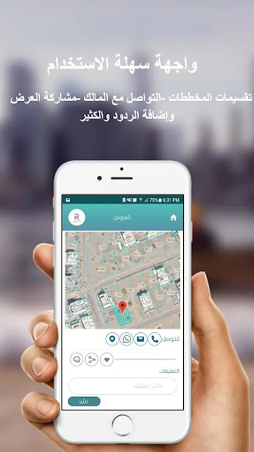 2) خاصية عرض الأراضي أو العقار للبيع أو الشراء من خلال التطبيق .