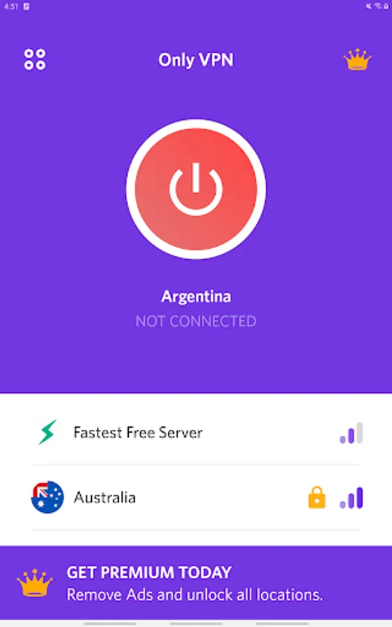 You can also Upgrade to Only VPN Premium to unlock our fastest servers and remove ads.