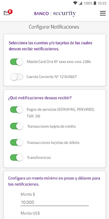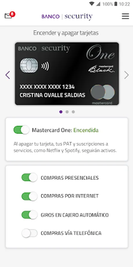 With Security ON from Banco Security you will be able to manage your cards and receive notifications in real time for the use of your Checking Account, Credit and Debit Card: