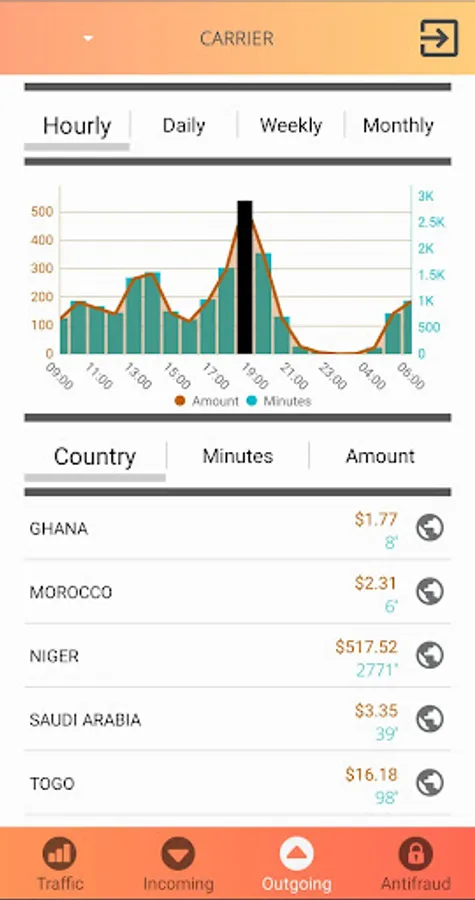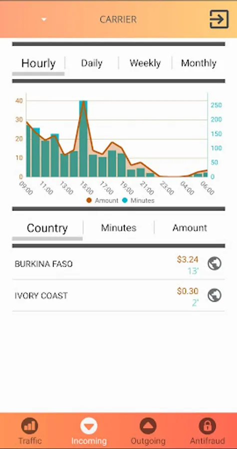 This app helps carriers interconnected with Orange platform monitor their traffic, revenue and cost with detailed reports on destinations through various periods of time