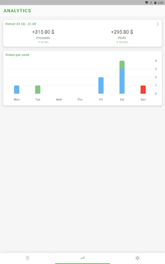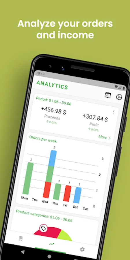 - View statistics about your orders and revenue. Analyze your income using the built-in widgets.