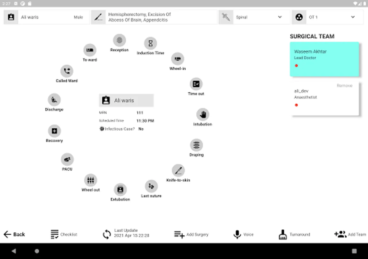 simple tap gesture to capture data during surgeries – enable users to record surgical team check in