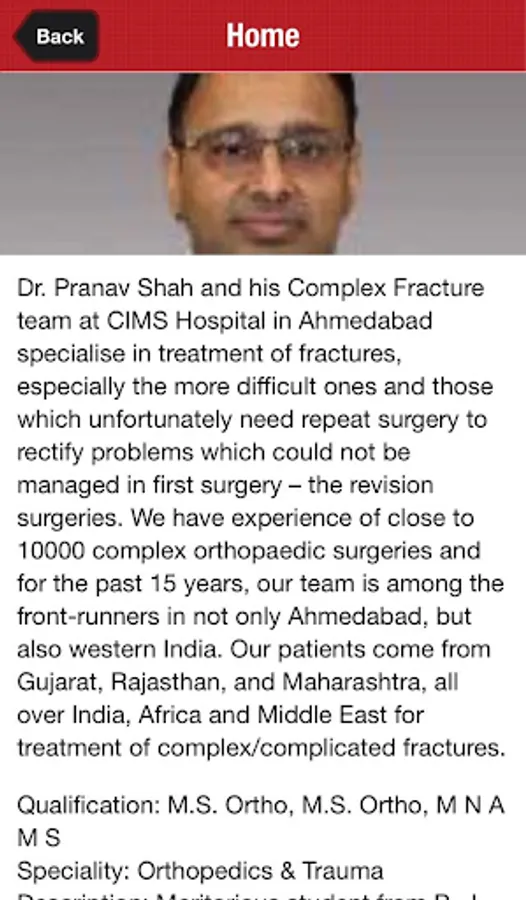 Dr. Pranav Shah and his Complex Fracture team at CIMS Hospital in Ahmedabad specialise in treatment of fractures, especially the more difficult ones and those which unfortunately need repeat surgery to rectify problems which could not be managed in first surgery – the revision surgeries. We have experience of close to 10000 complex orthopaedic surgeries and for the past 15 years, our team is among the front-runners in not only Ahmedabad, but also western India. Our patients come from Gujarat, Rajasthan, and Maharashtra, all over India, Africa and Middle East for treatment of complex/complicated fractures.