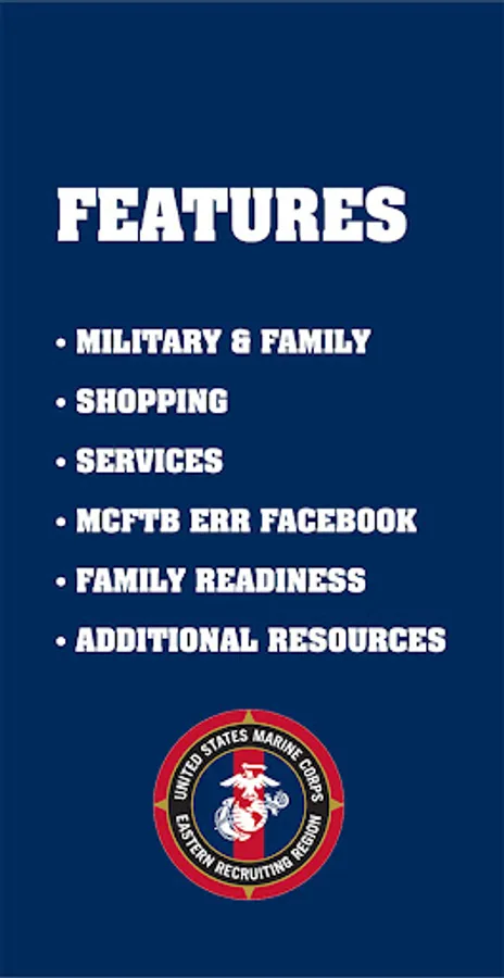 This app provides information about resources available to Marines in the Eastern Recruiting Region: 1st, 4th, & 6th Marine Corps Districts.