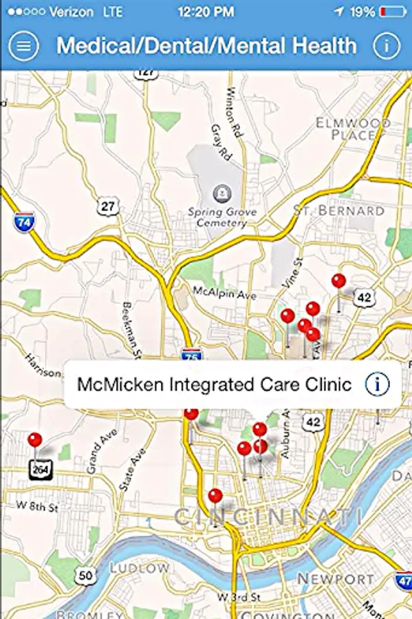 The Cincy Homeless Resource Map connects individuals and professionals to resources for those experiencing or at risk of experiencing homelessness in Cincinnati. Resources include Shelters, Housing, Meals, Groceries, Medical/Dental/Mental Health, Addiction Treatment, Financial, Educational, Jobs/Employment Skills, and Legal/Advocacy agencies. Agencies are listed by category with descriptions of services. In-app navigation will guide you to the agency selected. Phone numbers and bus routes are also provided.