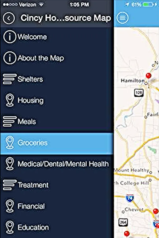 Cincy Homeless Resource Map Screenshots