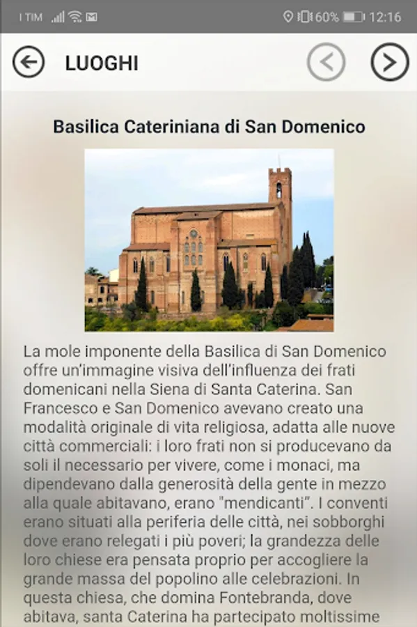 Nacque a Siena il 25 marzo 1347, dal tintore Jacopo Benincasa e da Lapa di Puccio de’ Piacenti. E’ la 24°, gemella, di 25 fratelli e sorelle. All’età di sette anni ebbe la prima visione di Cristo, con abiti papali, accompagnato dagli apostoli Pietro e Paolo e dall’evangelista Giovanni. L’esperienza segnò la sua vita, tanto che a sette anni fece voto di verginità perpetua; ma la famiglia ne ostacolò la vocazione, finché un giorno il padre la sorprese in preghiera con una colomba aleggiante sul capo.
