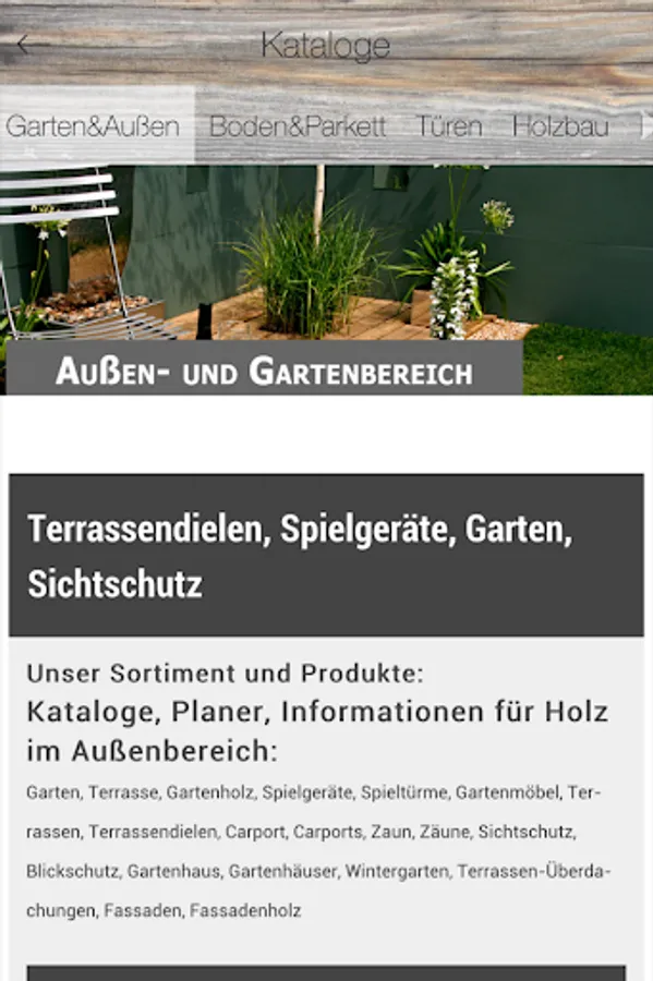 The Holzmarkt app is an app around your house, your apartment and housing. Current offers from our shop, our catalogs or information about our company can now be found directly on your smartphone. In addition to the current events, you will also find extensive advice on wood and terraces. In addition you will find everything about the Holz-Card our customer card for customers of Holzmarkt Wörlitz.