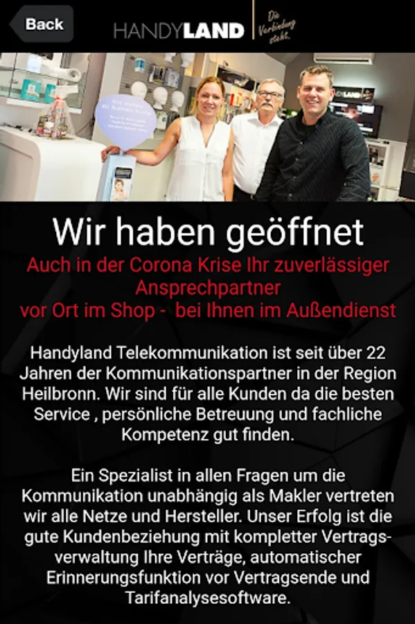 Use our Handyland app. With the Handyland app you enjoy a lot of advantages and are informed about all news and promotions. With the help of the Handyland app you can collect Handyland points and these can be redeemed for a bonus or a gift in Handyland