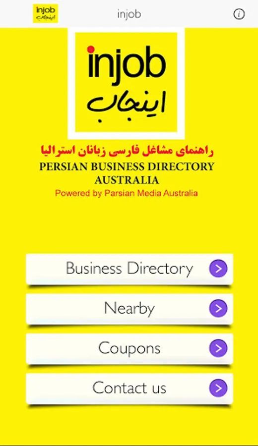 Injob is an Iranian/Persian Business Directory business in Australia. Download the Injob app for quick and easy access to getting in touch with Persian/Iranian/Farsi speaking businesses.