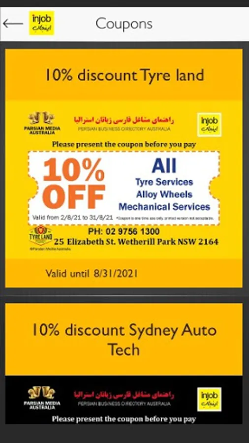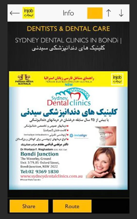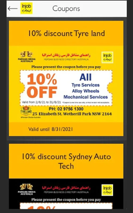 Injob is proudly presented by Parsian Media Australia. Injob Australia is an app that makes all businesses easy to reach by nearby services, sharing the route and information in no time. All Persian/Farsi speakers can use our reliable platforms to narrow the search and connect to Persian/Farsi speakers businesses. Injob adopted cutting edge technology to create reliable Business Directory in Australia such as mobile-friendly websites, app and strong social networking in the Persian community. Since 1993, Persian Business Directory published by Parsian Media Australia has remained as an online Persian Business Directory since 2010. In addition, from 2021-2022 Persian Business Directory would return to being published as a book.