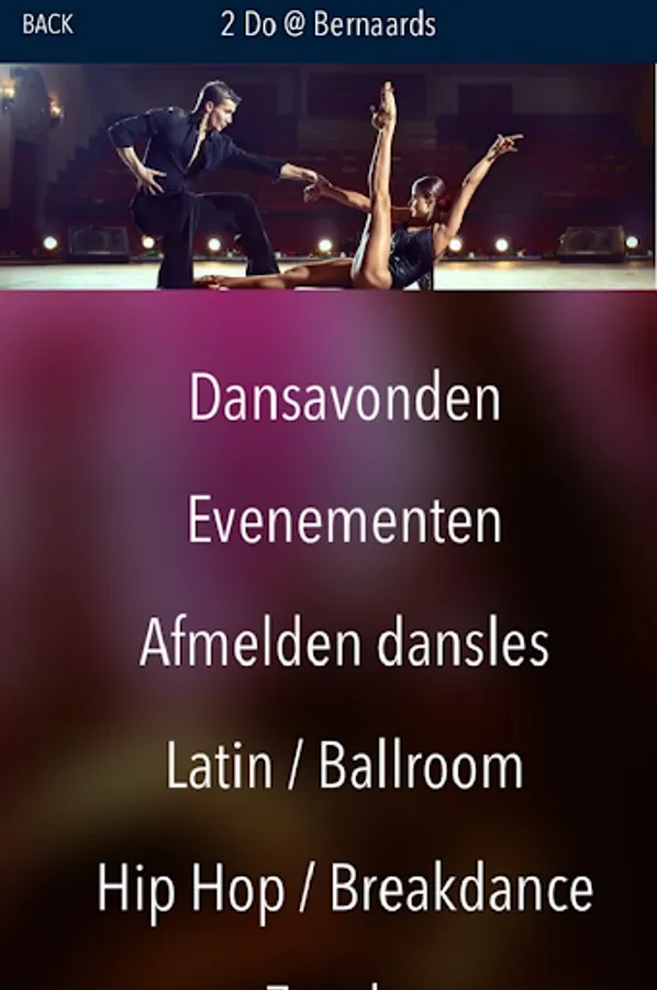 The app Danscentrum Bernaards gives members of the renowned dance center in Maastricht all information useful in monitoring the dance lessons and parties. Include all information from Just Jason. Indispensable for members, but also very interesting for anyone interested in dance (lessons).