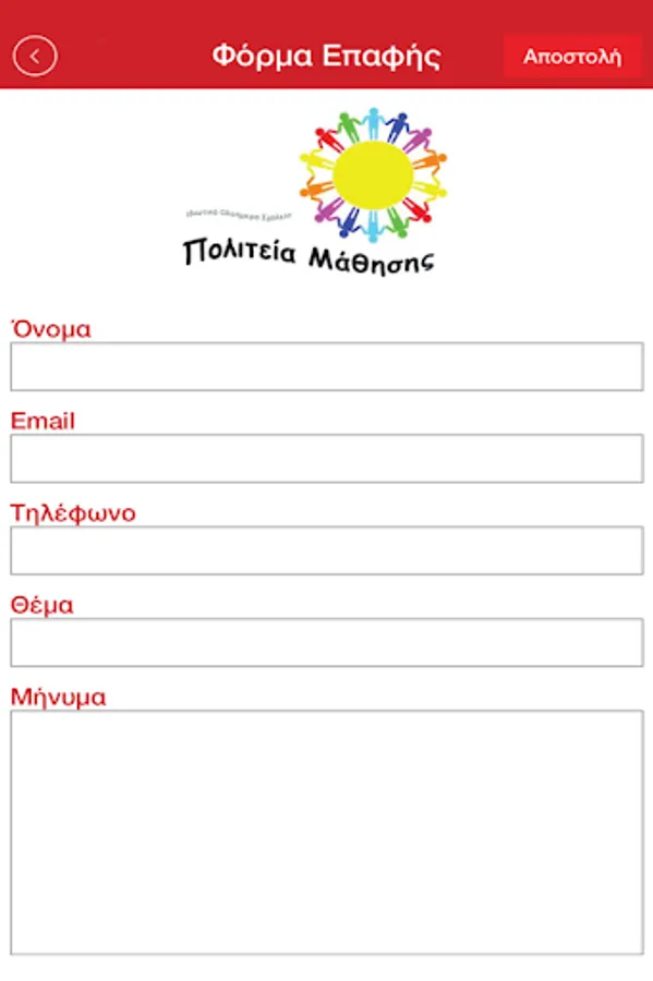 Καλώς ήρθατε στην εφαρμογή του Νηπιαγωγείου Πολιτεία Μάθησης. Μέσω της εφαρμογής θα μπορούν οι γονείς, μέσω των κινητών τους, να ενημερώνονται με μεγάλη ευκολία και οποιαδήποτε στιγμή το επιθυμούν, σχετικά με την Τάξη των παιδιών τους και γενικά για τα νέα του Νηπιαγωγείου μας.