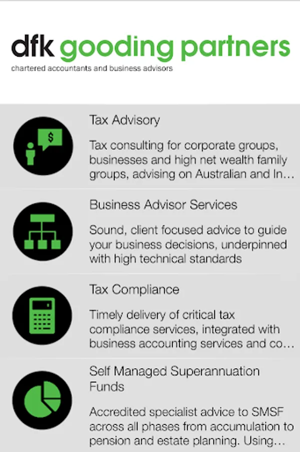 We invite you to download our dfk gooding partners app, developed to keep you connected and up to date with your business & taxation needs.