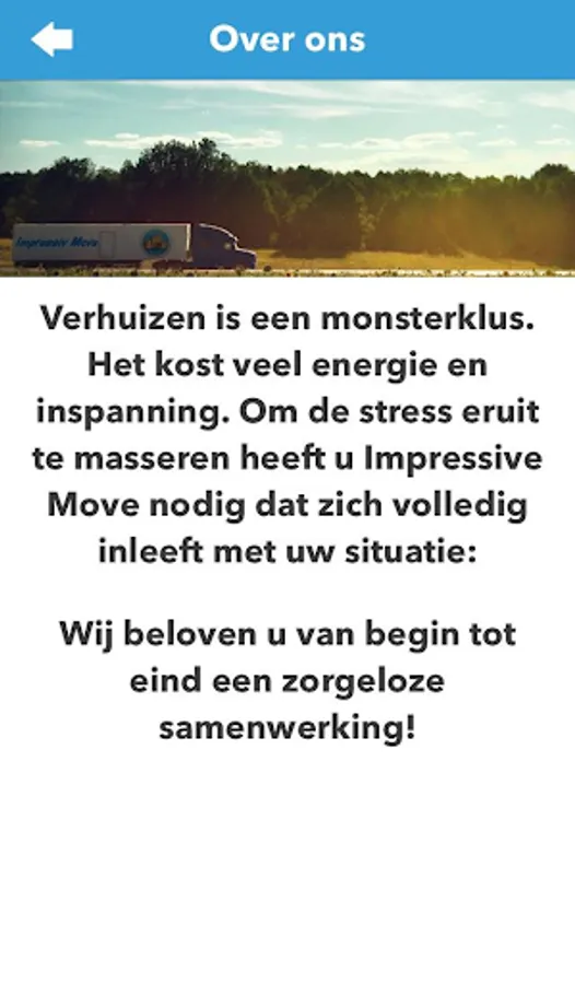 Met de app van Impressiv Move kunt u informatie vinden, formulieren invullen en ook is het mogelijk om gemakkelijk contact op te nemen.